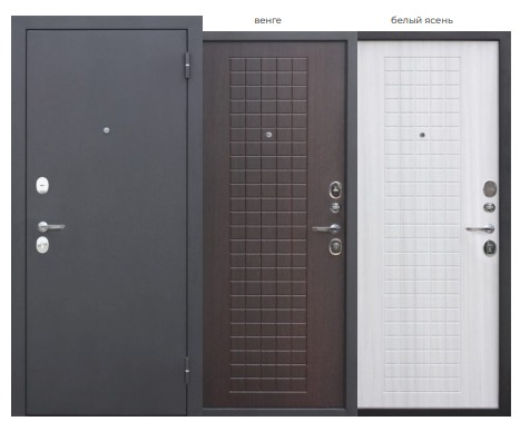 Внешнее покрытие: атмосферостойкое порошково-полимерное «чёрный муар» Внутреннее покрытие: фрезерованная МДФ-панель 6 мм, цвет - «венге», «белый ясень» Толщина дверного полотна: 60 мм Глубина дверного короба: 90 мм Наполнитель: пенополистирол Уплотнитель: 2 контура уплотнителя из вспененной резины Ручка: раздельная; цвет - хром Глазок: широкого обзора, цвет - хром Петли: 2 шт., наружные, открывание 180° Основной замок: цилиндровый RIGGER/MONARCH, диаметр ригелей: 14 мм Дополнительный замок: сувальдный RIGGER/MONARCH, диаметр ригелей: 14 мм Накладки: овальные с защитой от сквозняка; цвет - хром Независимая ночная задвижка Противосъём: штыри, 2 шт. Размеры: 860х2050 мм, 960х2050 мм