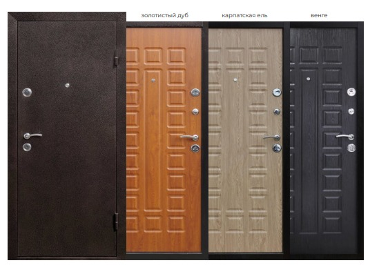 Внешнее покрытие: атмосферостойкое порошковополимерное «медный антик» Внутреннее покрытие: фрезерованная МДФ-панель 8 мм, цвет - «золотистый дуб», «карпатская ель», «венге» Толщина дверного полотна: 68 мм Глубина дверного короба: 90 мм Наполнитель: пенополистирол Уплотнитель: 2 контура уплотнителя из вспененной резины Ручка: раздельная; цвет - хром Глазок: широкого обзора, цвет - хром Петли: 2 шт., наружные, открывание 180° Основной замок: цилиндровый КАРАТ, диаметр ригелей: 16 мм Дополнительный замок: сувальдный КАРАТ, диаметр ригелей: 16 мм Броненакладки: круглые с защитой от сквозняка, на оба замка; цвет - хром Независимая ночная задвижка Противосъём: штыри, 2 шт. Размеры: 860х2050 мм, 960х2050 мм